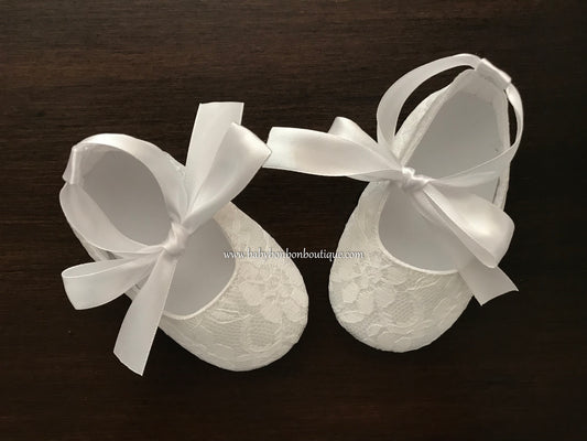 Baby Girl Ivory Baptism Shoes, Baby White Lace Baptism shoes