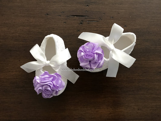 Lace Baptism Crib Shoes, Ivory Flowers & Rhinestones