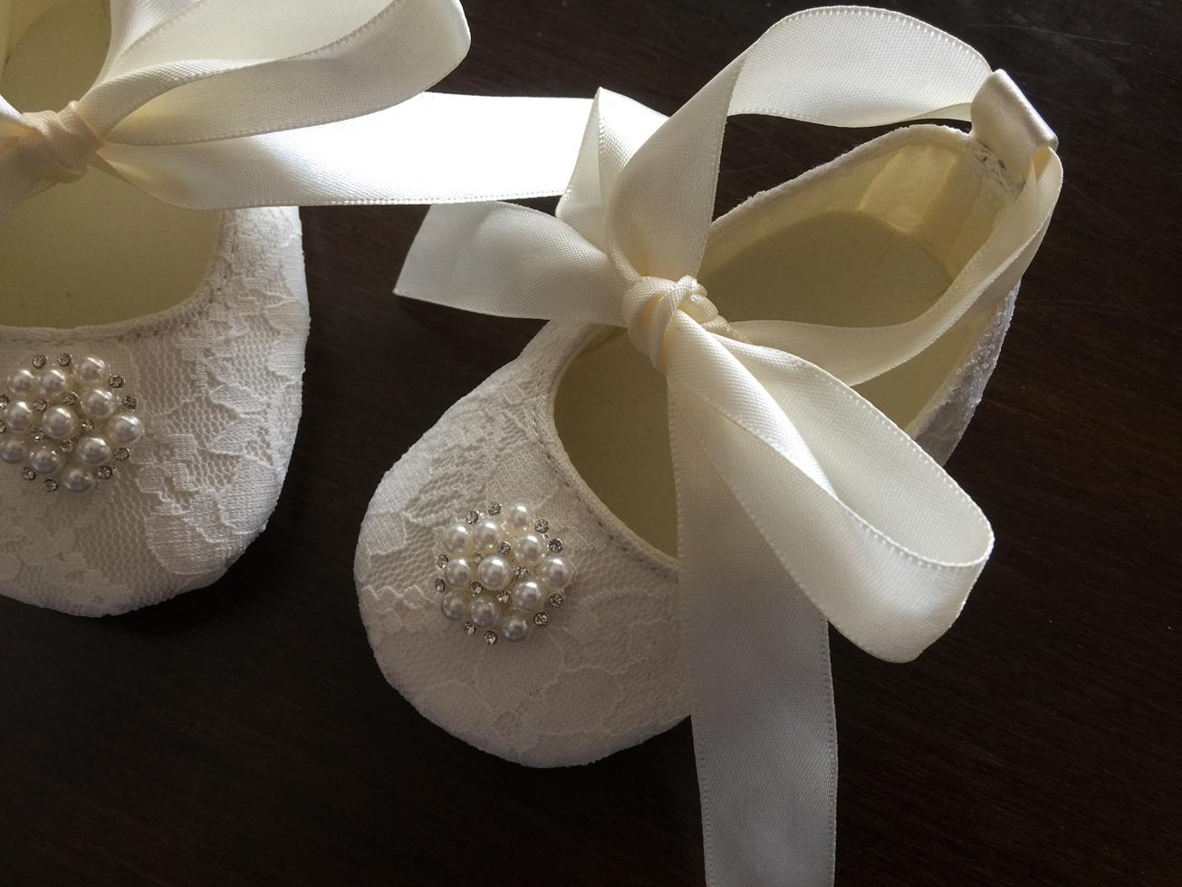 Baby Girl Ivory Lace Baptism Shoes, Pearls & Rhinestones