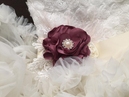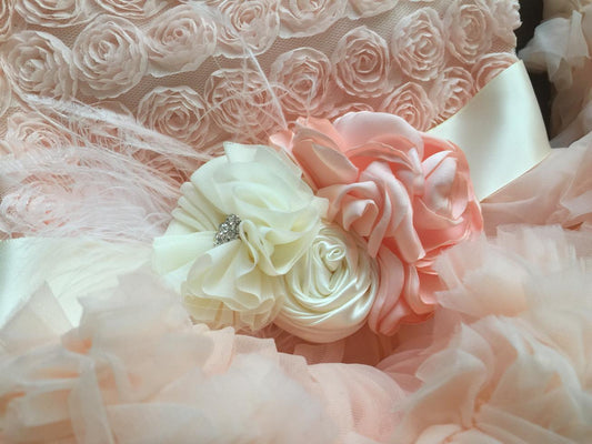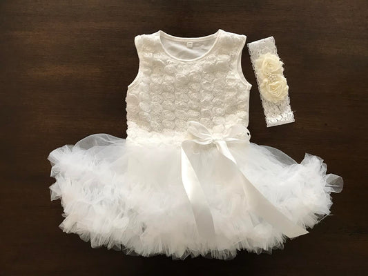 French Ivory Fluffy Baptism Dress with Headband and Sash