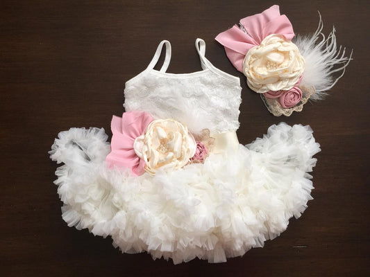 Baby Girl Lace Romper and Ivory Tutu Skirt Outfit