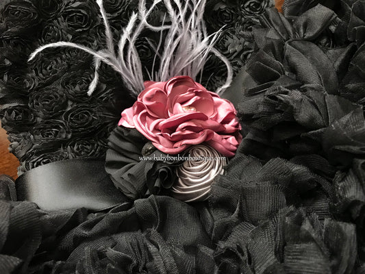 Baby Black Tutu Dress with Vintage Rose Headband and Sash