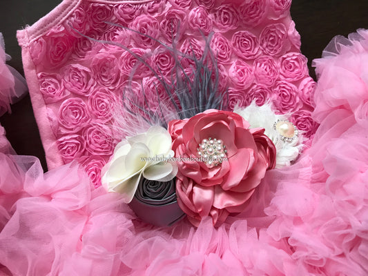 Baby Gray Fluffy Tutu Dress with Pink Headband and Sash