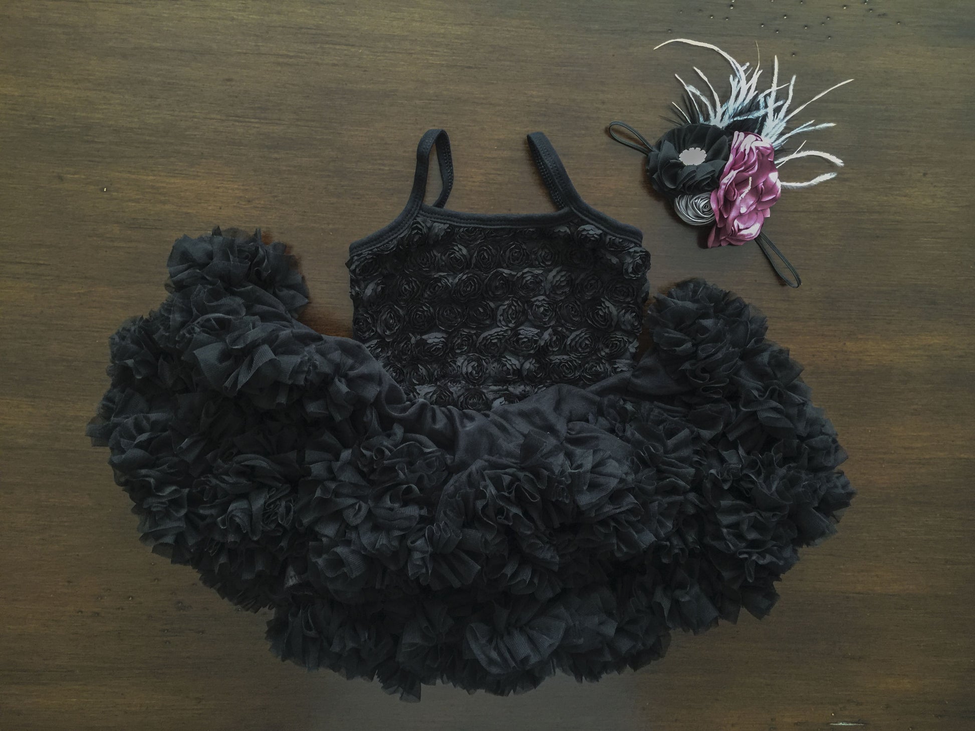 This beautiful Black Fluffy Tutu Dress and French Vintage Headband Set is simply adorable. Part of the Baby French Vintage Collection, this baby girl dress has a French flare. For your baby's comfort, it is made with soft fabrics in a Black color that is perfect for any occasion. It has multi-layered fabrics for super fluffiness. The delicate bust flower completes the French Vintage design. The headband is handmade with beautiful Black, Smoky Gray, and Vintage Rose flowers, embellished by pearls and rhinestones. This Black Fluffy Tutu Dress, and headband set is perfect for baptism reception dress, flower girl dress, christening reception dress, smash cake dress, baby birthday dress, & baby photography dress.