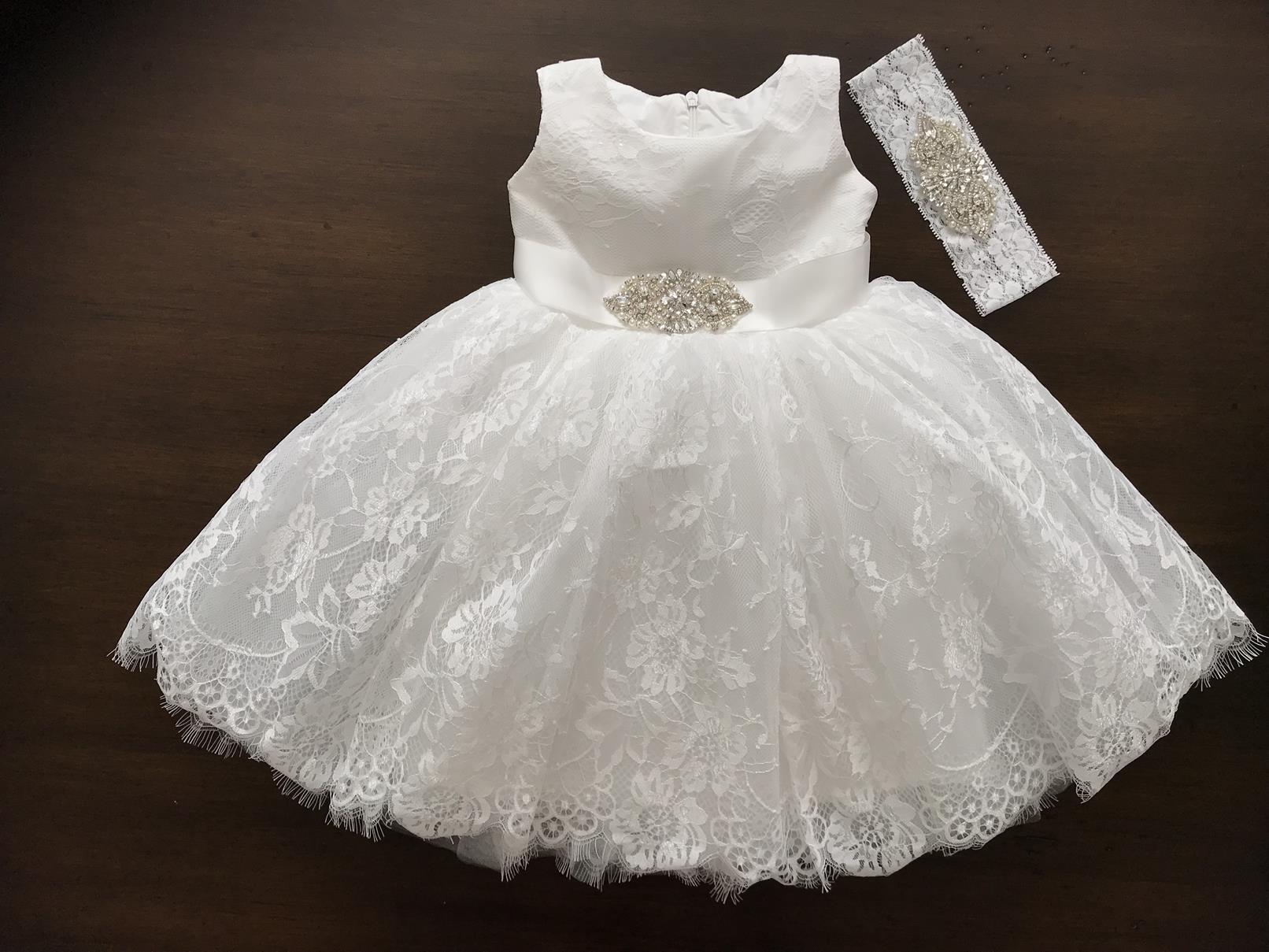 Baby Lace Christening Dress with Rhinestones Headband