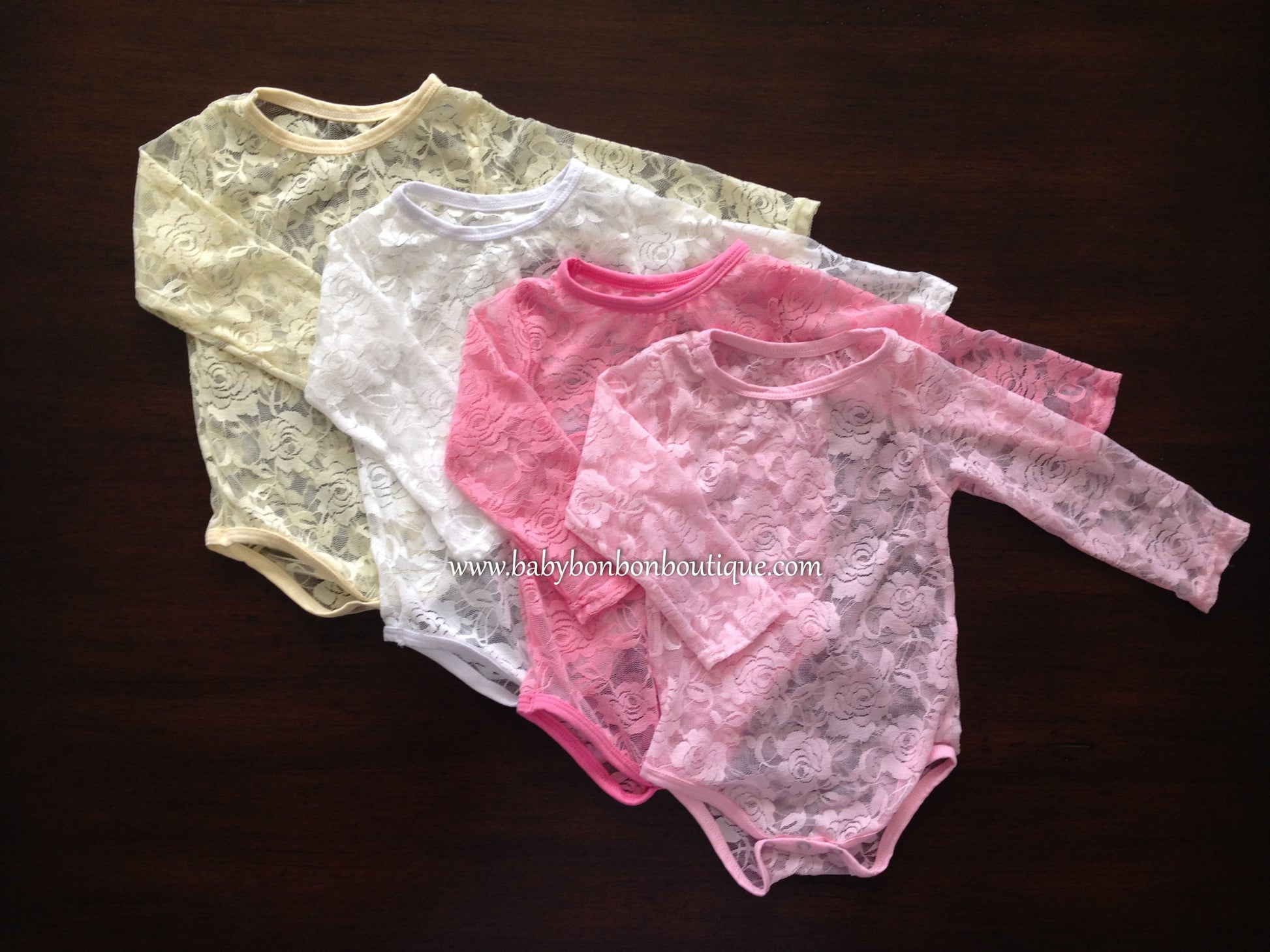This chic baby lace onesie is the perfect summer outfit. It is made with beautiful soft lace, in your choice of beautiful colors. The elastic floral lace adds much comfort and flexibility. Pair it up with a Baby Bonbon Headband, ballerina skirt, or fluffy tutu skirt for picture perfect glamour.