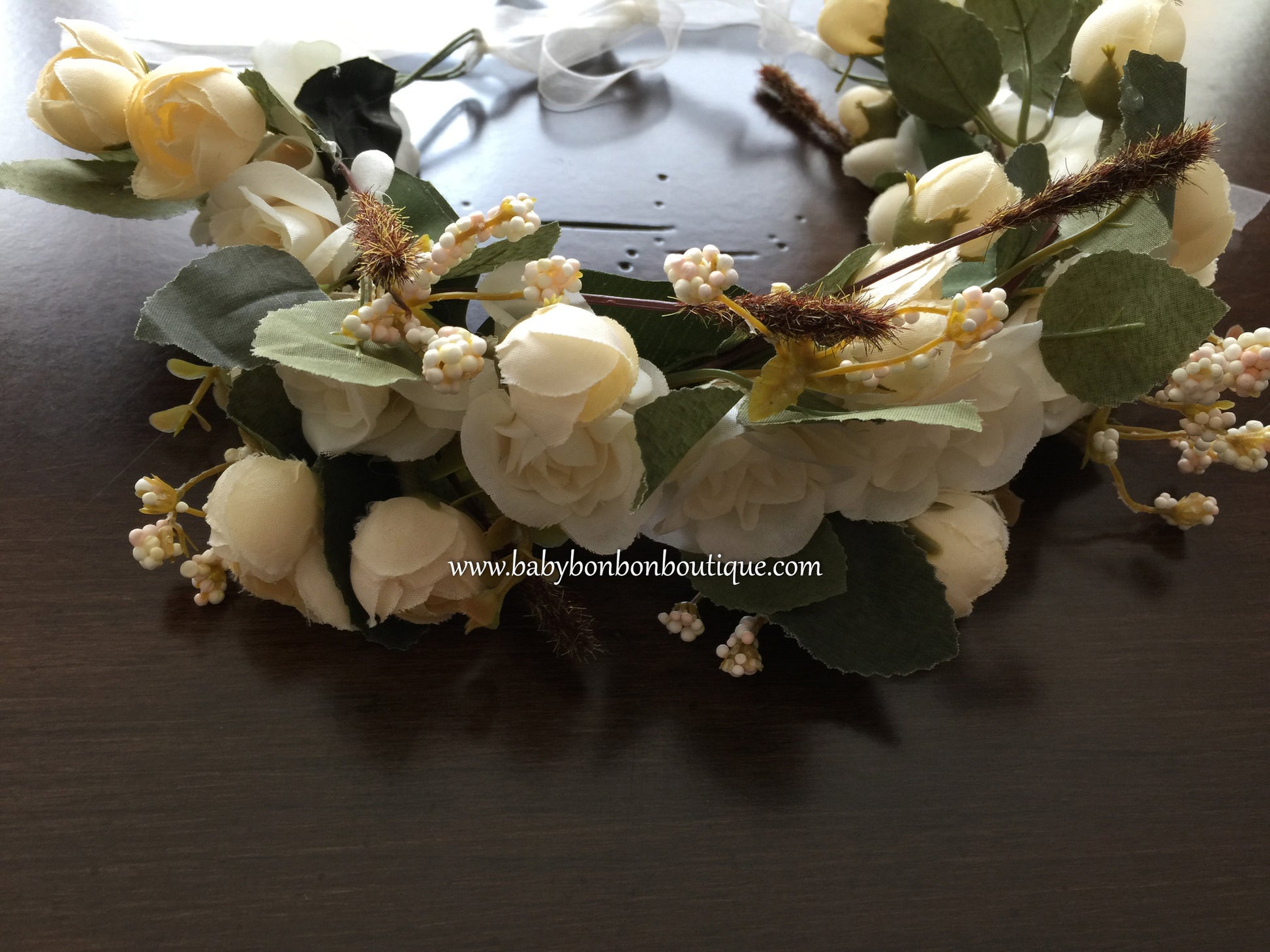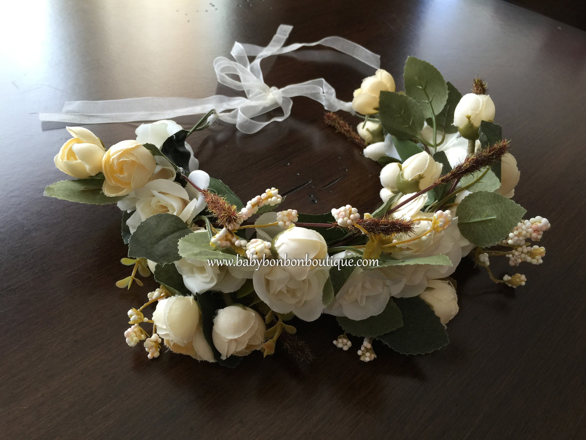 Flower Girl Flower Head Wreath, Ivory Head Crown, Toddler Flower Crown