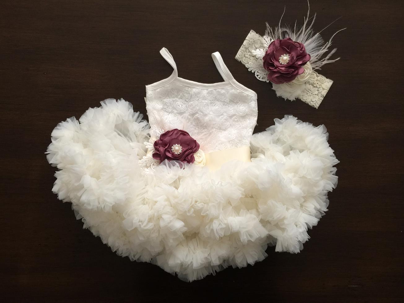 French Ivory Fluffy Baptism Dress with Headband and Sash