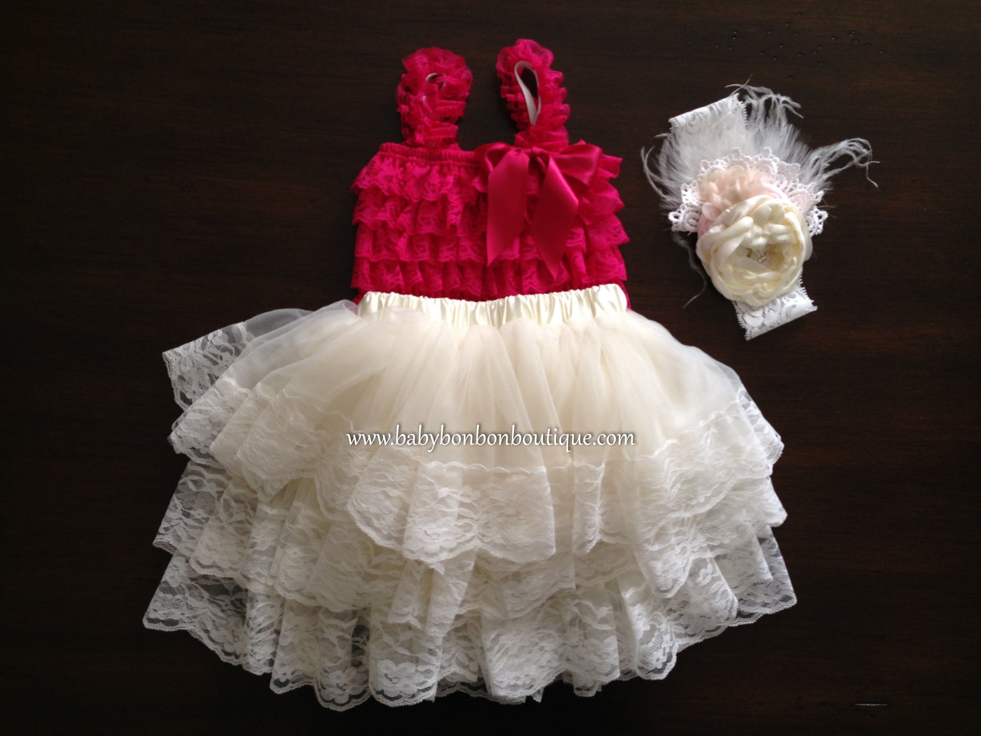 This baby girl vintage style, three outfits in one, French Ivory and Peach trio is gorgeous. The Peach Fluffy Layered Skirt is super soft and fluffy. For your's baby comfort, it is made using soft chiffon and lace in a beautiful Ivory color that is perfect for the summer. The elastic waistband allows for full comfort. The chic baby lace petti romper completes the style. It is made with soft lace. The elastic and lace straps add much comfort and flexibility. The headband is made to order with a beautiful ivory flowers, white lace, feathers, pearls, and rhinestones over Ivory lace. Your baby may wear this as a lovely set, and/or separately, making it the perfect birthday party dress, baby smash cake dress, baptism reception, christening reception, and baby photography.
