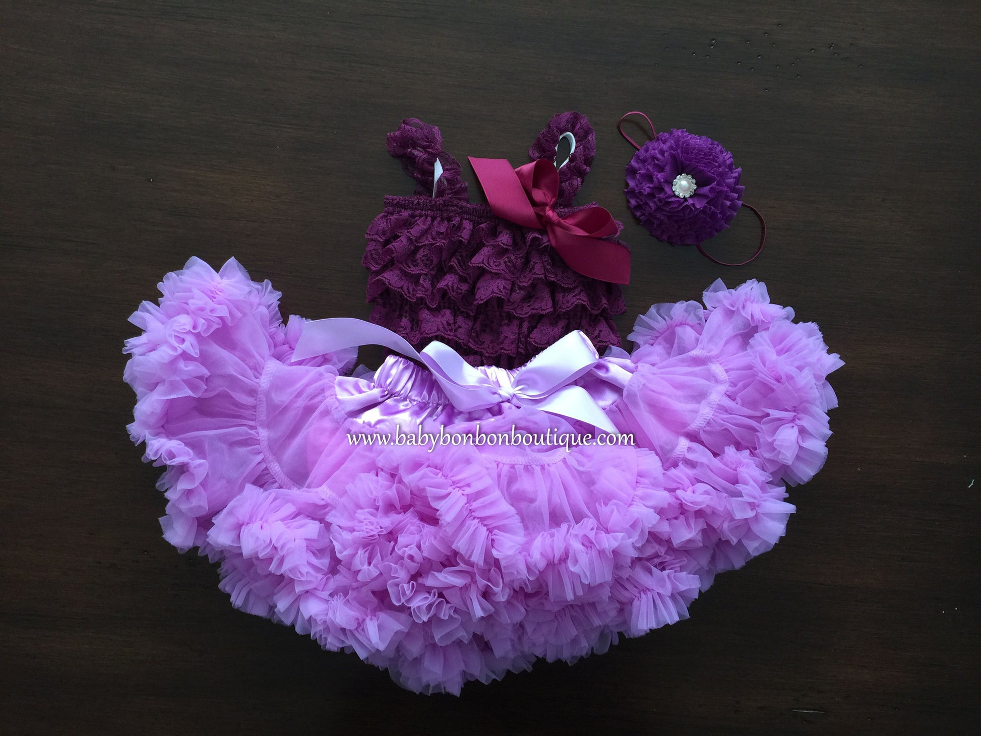 Purple Petti Set, Lavender Fluffy Skirt & Purple Lace Romper